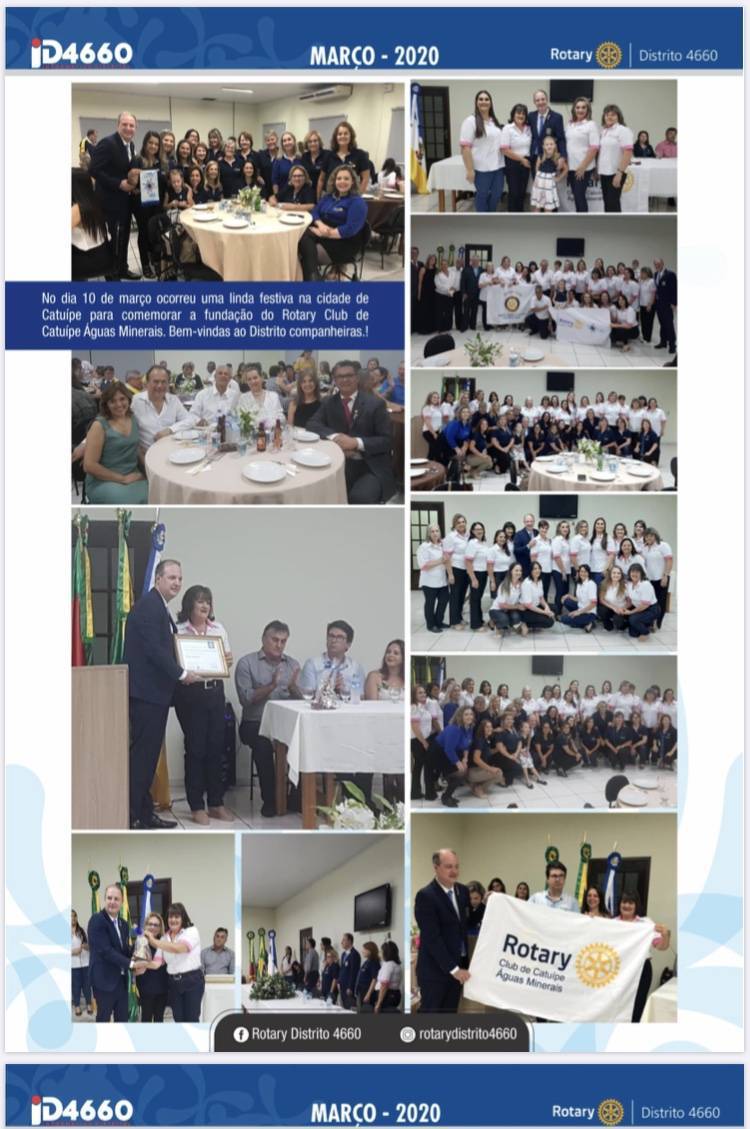 O RC de Cruz Alta Ana Terra participa da fundação do RC de Catuípe Águas Minerais e é destaque no Informativo distrital.