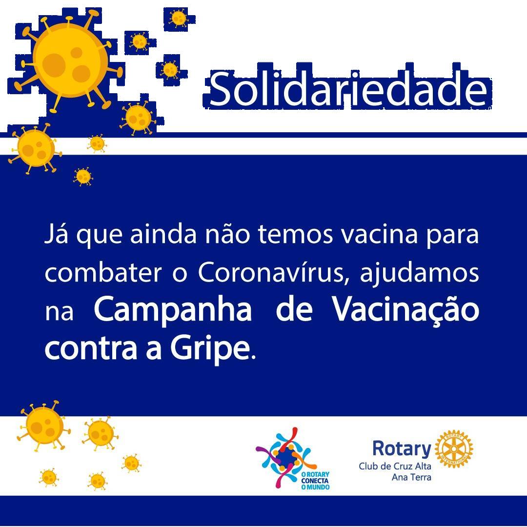Na tarde dessa sexta-feira (20), a presidente do RC Ana Terra, Marilda Rubin, juntamente com o presidente do RC de Cruz Alta, Pablo de Pietro e do RC Érico Veríssimo, Elizandro Albrecht, o Coordenador de Imagem Pública do Rotaract de Cruz Alta, Leonardo Prevedelo e demais representantes do Lions, participaram de uma reunião promovida pelo Gabinete do Prefeito, pela Vigilância Sanitária e pela Secretaria Municipal da Saúde para tratar sobre a Campanha da Vacinação contra a Gripe.
