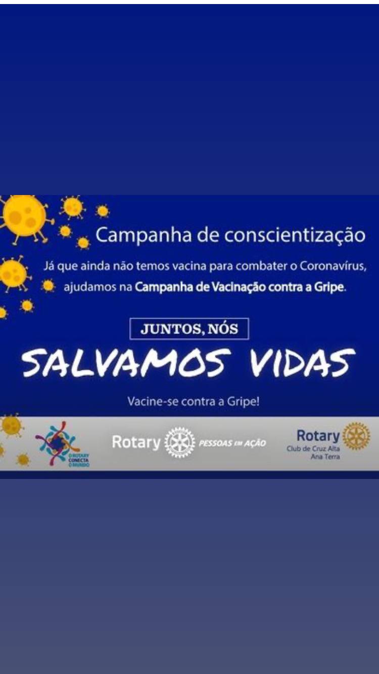 Ajudamos na Campanha Nacional de Vacinação contra a Gripe a grupos prioritários, disponibilizando recursos para contratação de transporte, que levará os agentes da saúde até as residências de idosos para imunização. Nós somos Rotary. Nós somos #PessoasEmAção