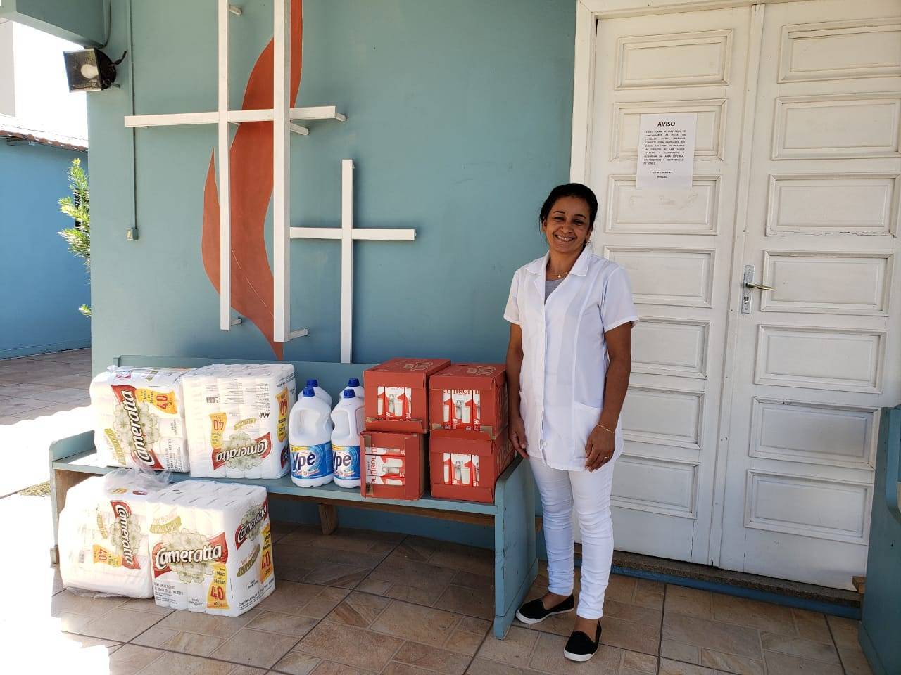 Doação de leite, desinfetante e papel higiênico, ao Lar Suzana Wesley
