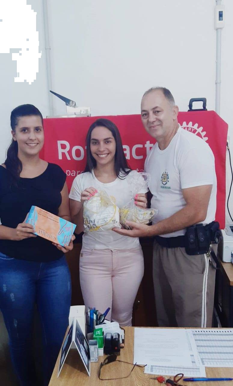 Hoje (21/03) o Rotaract Club de Panambi fez a doação de máscaras, luvas e álcool gel para a Brigada Militar de nossa cidade.