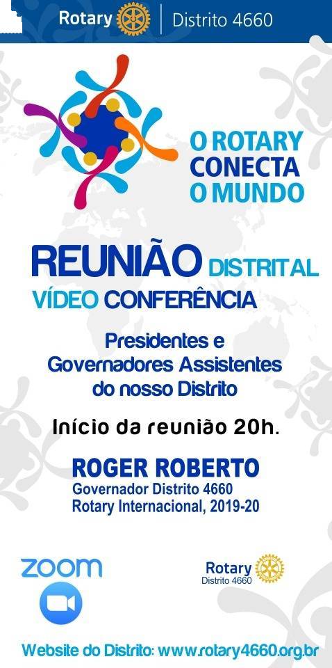 Governador do Distrito 4660, Roger Roberto, convida Presidentes para Reunião Virtual.