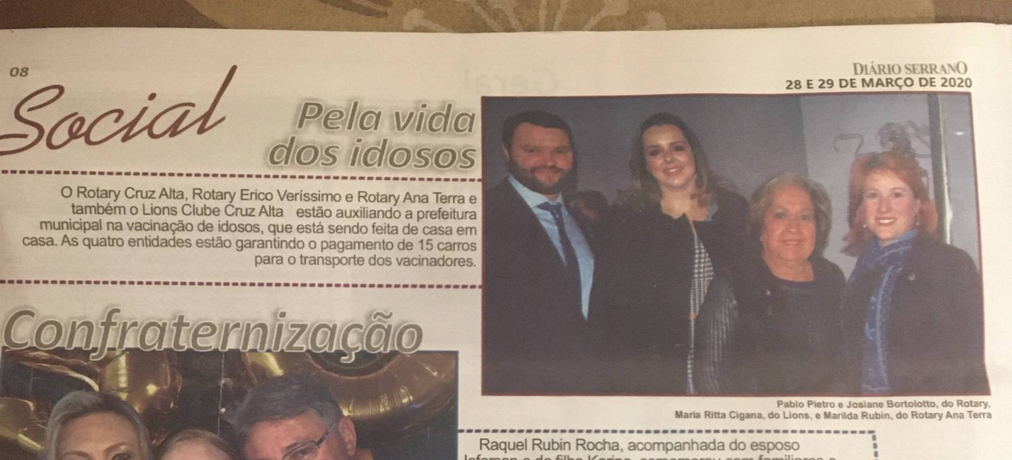 O RC de Cruz Alta Ana Terra contribuiu com recursos para transportar agentes de saúde para vacinar idosos em suas residências.