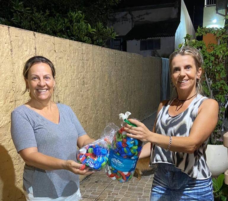 A cidadã Maxcemira Trevisan, também está preservando a natureza, e colaborando na coleta de tampinhas para o Rotary.