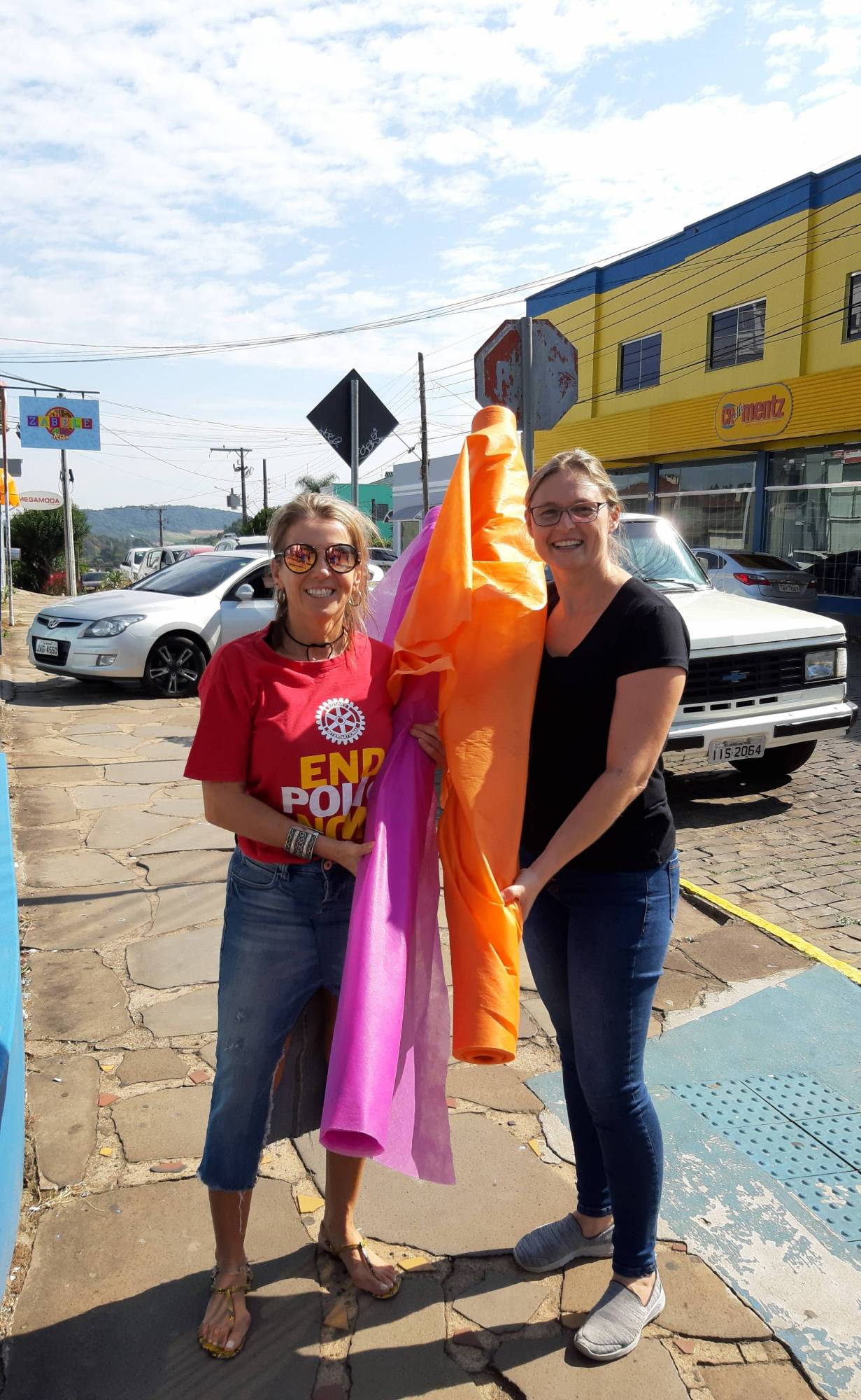 Na manhã de terça-feira, assim que a rotariana Gloria Pellegrin, adquiriu os 2 rolos de TNT, da antiga Loja Piccinim, ja entrou em contato com Catia Dalmolin responsável pela distribuição dos TNT para a confecção de máscaras e jalecos, e providenciaram a entrega.