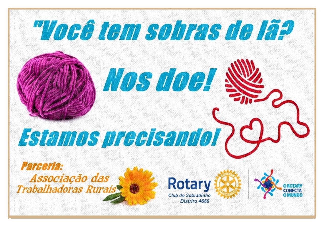 O Rotary de Sobradinho, vai juntar todas as doações de lãs e linhas e entregar para as Trabalhadoras Rurais, onde essas mulheres farão com muito amor e carinho mantas,meias, toucas que serão entregue para idosos e também para crianças.