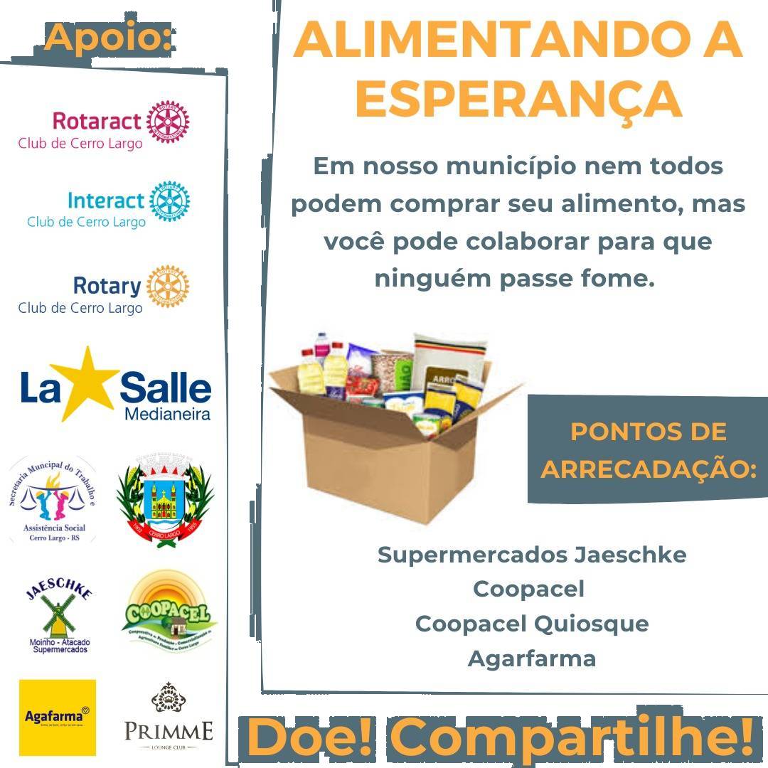 O projeto, que começou da iniciativa do Rotaract, da Secretaria do Trabalho e da Assistência Social, do Interact e das Farmácias Winner, hoje tem 6 novos parceiros: o Colégio La Salle Medianeira, a Prefeitura Municipal de Cerro Largo, o Moinho – Atacado – Supermercados Jaeschke, a Cooperativa De Producão E Comercialização Da Agricultura Familiar De Cerro Largo LTDA (COOPACEL), a Farmácia Agafarma e a Primme Longe Club.