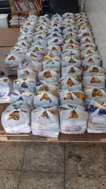 Em ação conjunta com o Distrito 4660, o Rotary Club de Ijuí juntamente com os demais clubes de Rotary da cidade, e o apoio da Comercial Zaffari, realizaram neste sábado, dia 18, a doação de 67 cestas básicas, cerca de 700 kg de alimentos a Organização Ijuí Sem Fome. A campanha do Distrito foi realizada entre os dias 09 e 13 de Abril de 2020, e teve como objetivo a arrecadação de cerca de 12,5 toneladas de alimentos que foram destinados as organizações de combate a fome dos municípios que compõe o Distrito 4660. A mesma ação também foi desenvolvida nos outros distritos do estado, onde a soma dos esforços de todos os rotarianos representou a arrecadação de mais de 50 toneladas de alimentos. É o Rotary conectado e fazendo a diferença.