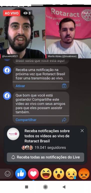 Durante os dias 18 e 19 de abril, a Rotaract Brasil, respeitando as orientações da OMS e do RI, em atenção a pandemia e a quarentena, proporcionou aos Rotaractianos de todo o Brasil, e também demais membros da família Rotária, treinamentos online, de todas as avenidas, fazendo uma grande interação, com mais de 2000 inscritos. Ao vivo, estiveram em mais de uma plataforma, possibilitando assim o acesso a quem desejasse.