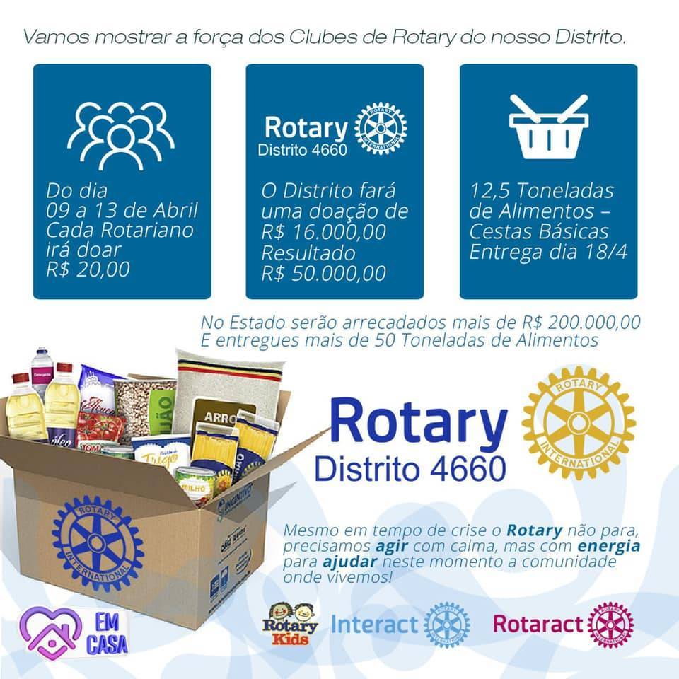 Nos unimos aos 62 clubes de Rotary do nosso distrito 4660 para angariar R$ 50.000,00 e doar mais de 12 toneladas de alimentos.