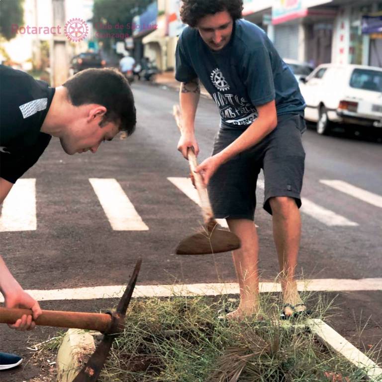 No final da tarde de quarta integrantes do Rotaract se reuniram na avenida para a limpeza da sujeira dos canteiros. Há dias eles foram pintados (e não sabemos por quem, se tu souberes por favor nós conte!), e então decidimos fazer uma limpeza na terra no meio das flores.